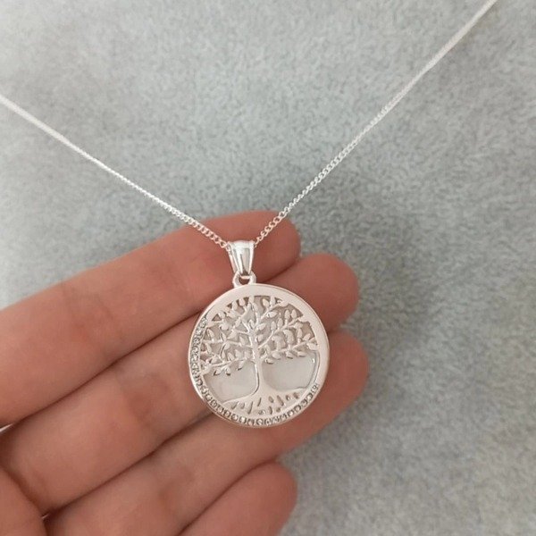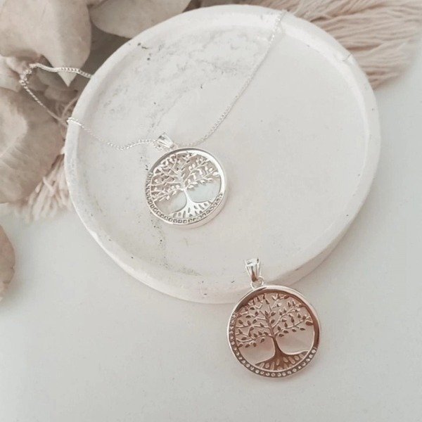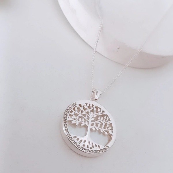 DIJE COLGANTE ARBOL DE LA VIDA FONDO PIEDRA DE NACAR