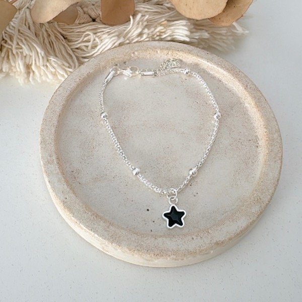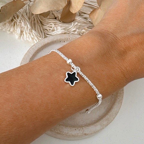 CON BOLITAS Y DIJE COLGANTE DE ESTRELLA CON ESMALTE NEGRO