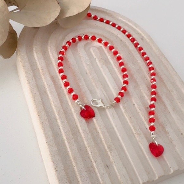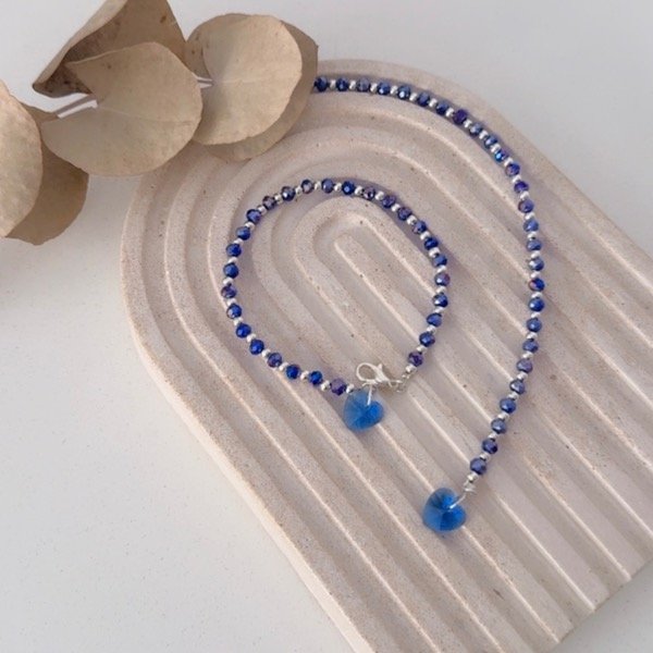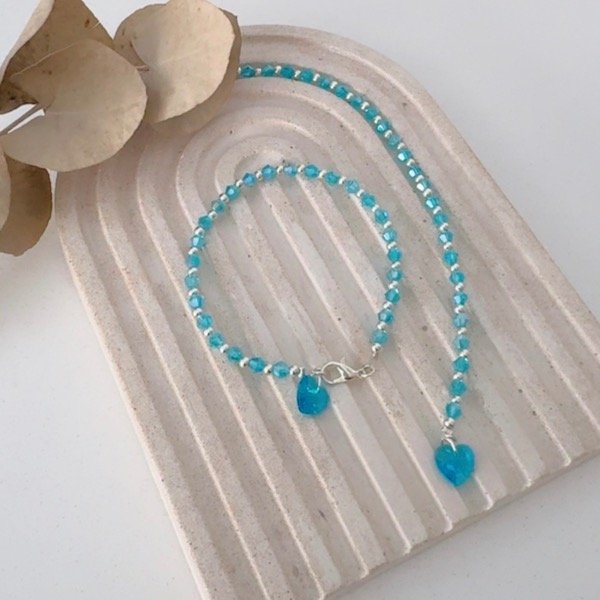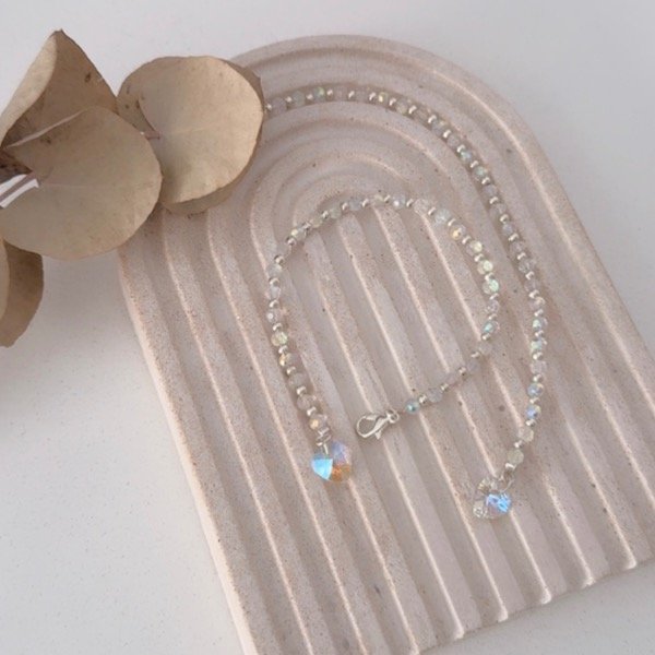 PULSERA PIEDRAS TORNAZOL CON BOLITAS Y DIJE COLGANTE DE CORAZÓN
