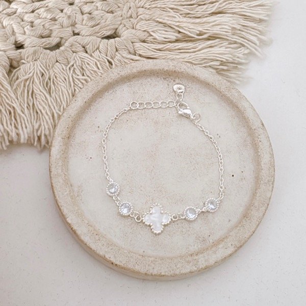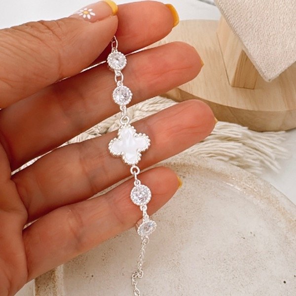PULSERA ESTILO VAN CLEEF CON DETALLES EN PIEDRA DE NÁCAR BLANCAS